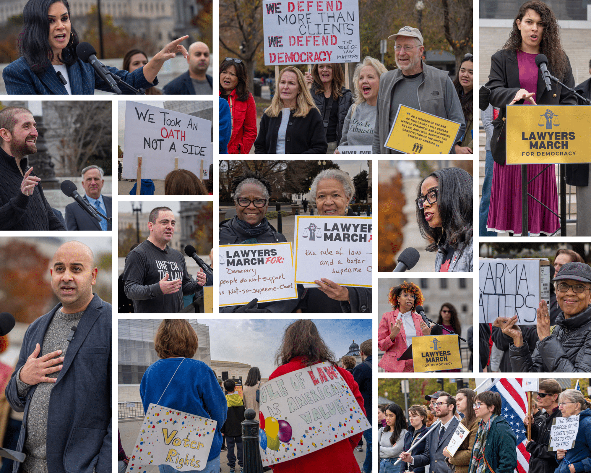 Kicking off on November 15, 2025 outside of the U.S. Supreme Court, the Lawyers March for Democracy brings together fellow attorneys, law students, and legal advocates for powerful actions and organizing opportunities to declare what should be obvious: No one is above the law–not even the president. Through this work, we will come together to call out the Trump administration’s lawlessness and the Supreme Court’s complicity in Trump’s authoritarianism and build a lawyers movement to counter it.